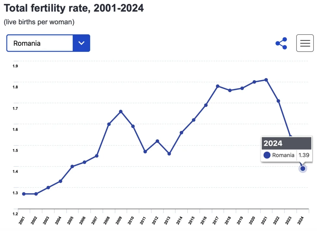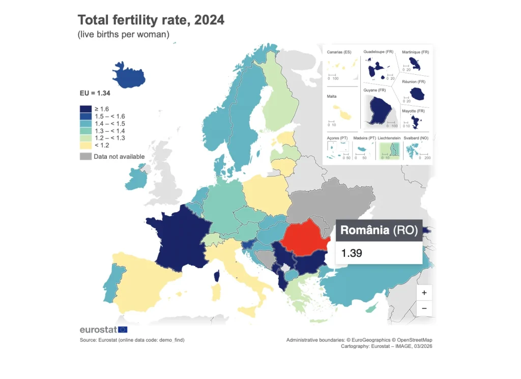 - 1,39 nașteri vii per femeie – rata totală a fertilității în România în 2024